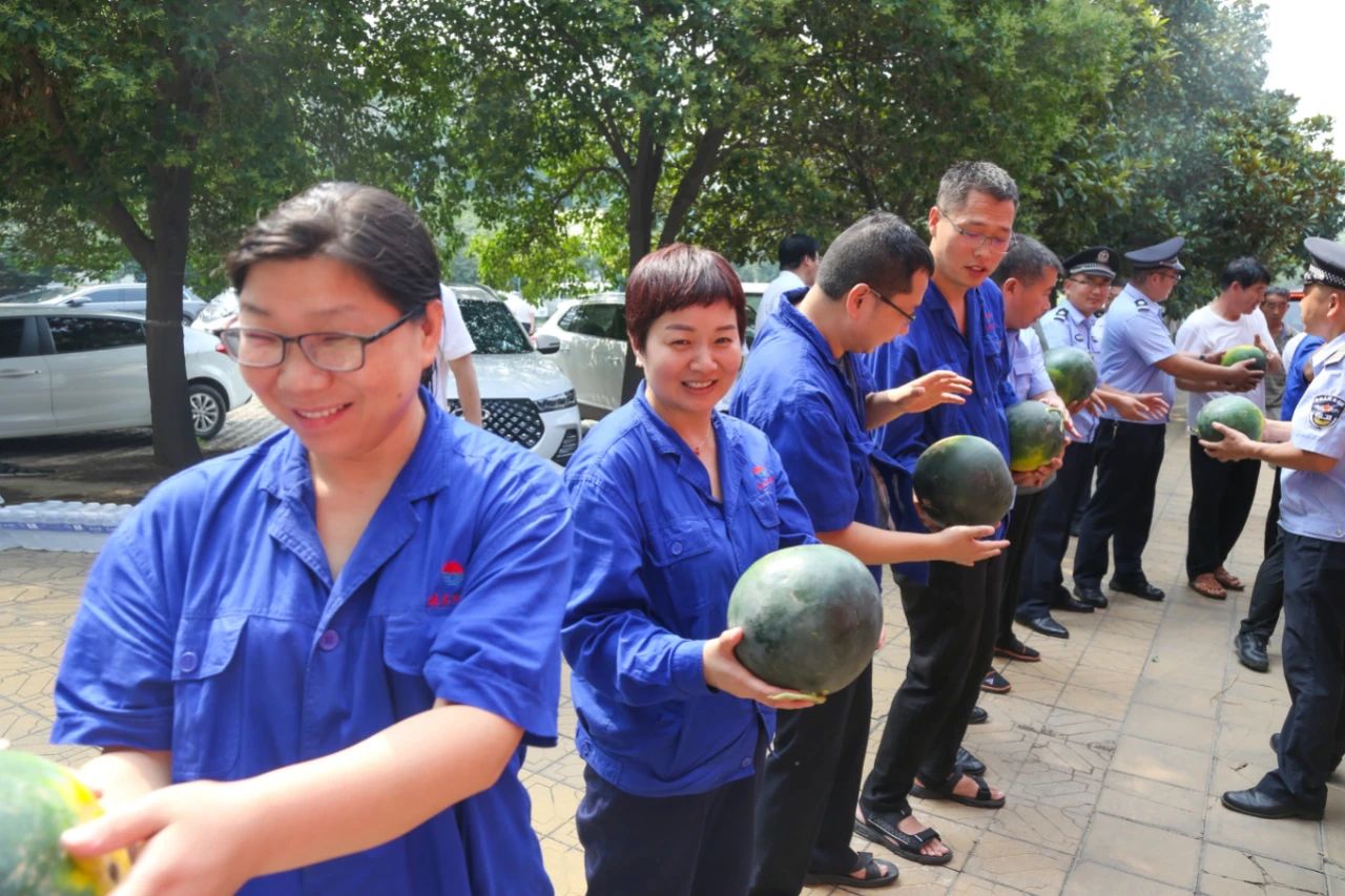 7月14日上午,受集團公司賀懷欽董事長委托,薄光利、周鐵柱、王力、楊新旭等集團公司領導及相關人員深入一線,給各單位送去了西瓜、礦泉水、防暑藥品等物資,并向高溫期間堅守崗位的廣大員工表示衷心的感謝和誠摯的問候。