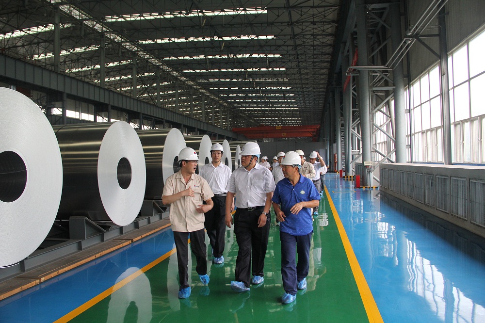 在集團公司張洪恩董事長及有關領導的陪同下,中國銀行河南省分行領導金瑜銘一行頂著炎炎烈日,深入生產一線,先后參觀了電力公司、鋁業公司400KA鋁電解生產線。隨后,銀行領導重點參觀了高性能鋁合金特種鋁材項目生產及建設現場。中孚高精鋁公司負責人向銀行領導簡要介紹了生產工藝流程、產品質量及市場開拓情況。金瑜銘一行興致勃勃地參觀了镕鑄、熱軋、冷軋的完整工序,或駐足觀看,或即興提問,或相互交流。當看到銀光閃閃的合金板錠時,他們忍不住輕輕撫摸,對企業整體轉型成果表示由衷的贊嘆。