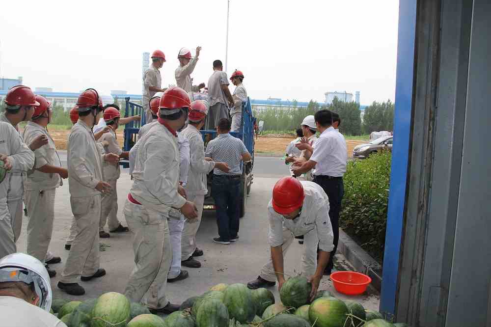 進入7月以來,持續高溫,熱氣襲人,但公司廣大員工不畏困難,戰高溫、斗酷暑,依舊堅守崗位,為實現公司全年目標而奮力拼搏。7月13日下午,受集團公司張洪恩董事長的委托,公司黨委書記馬路平帶領部分班子成員深入生產現場,看望、慰問奮戰在高溫一線的廣大員工,為他們送去了夏季防暑物品,為員工們帶來了絲絲“清涼”。