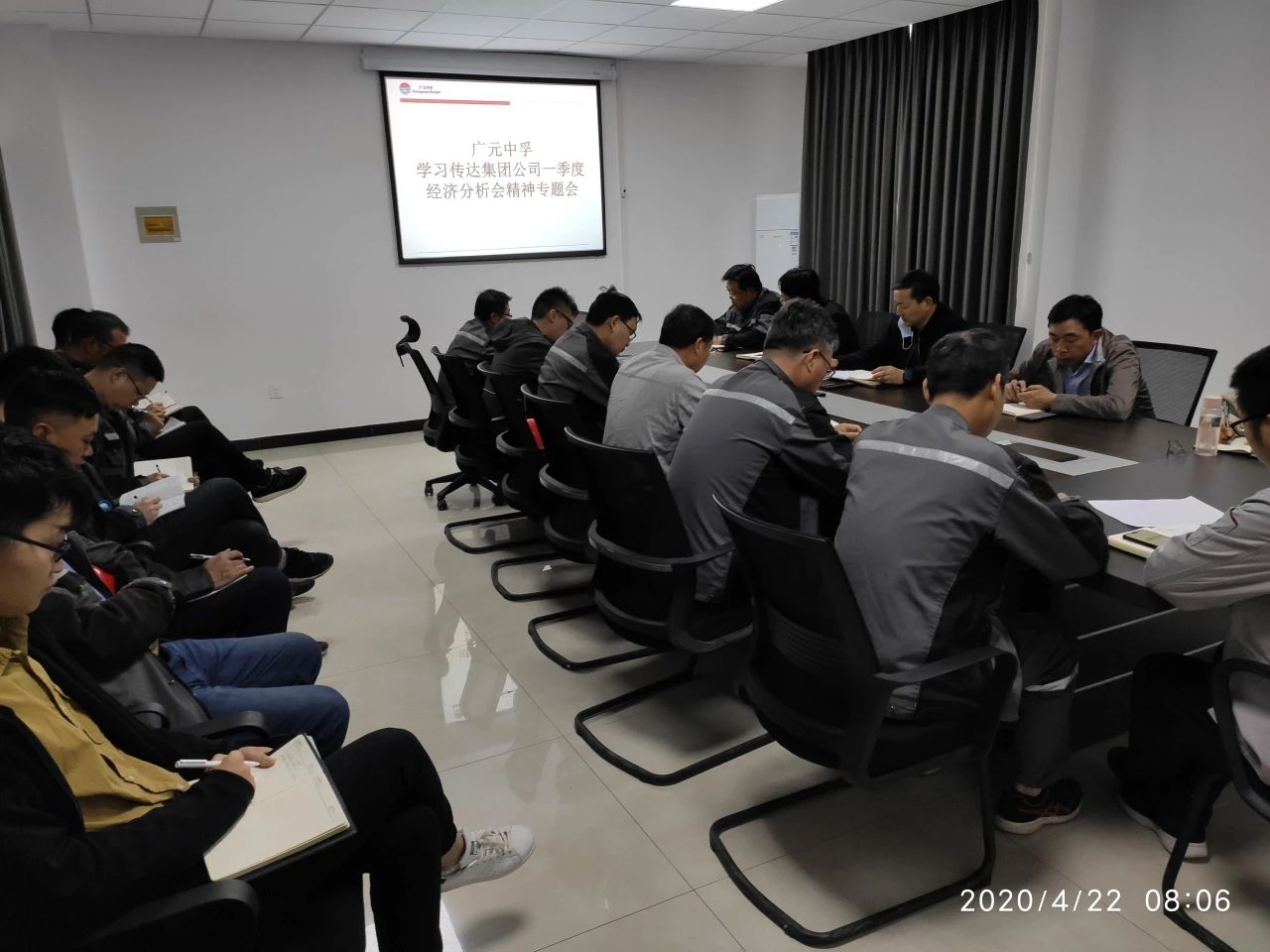4月21日下午,中孚實業總經理助理、生產管理部經理王力組織生產管理部和營銷公司員工集中學習集團公司第一季度經濟分析會議精神。