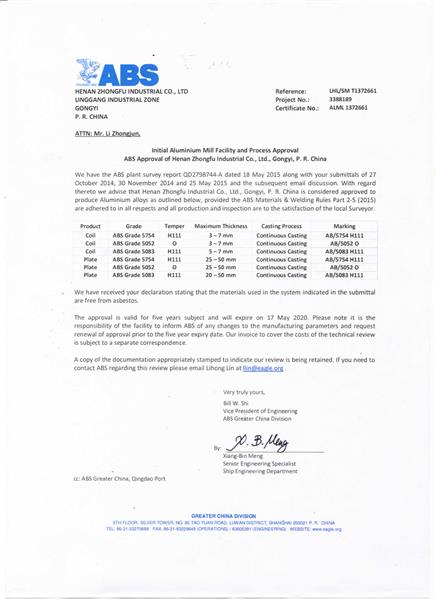 美國(guó)船級(jí)社(ABS)認(rèn)證證書(shū)