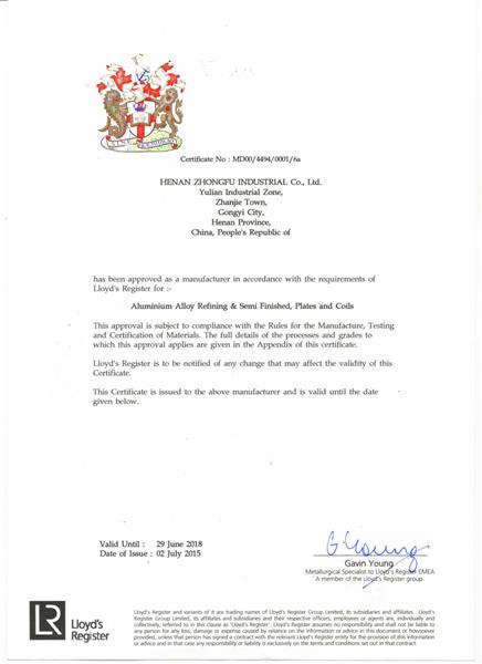 英國(guó)勞氏船級(jí)社(LR)認(rèn)證證書(shū)