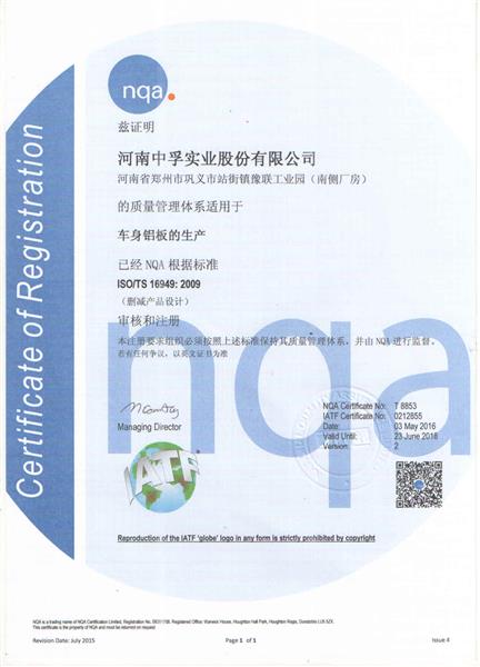 TS16949汽車板認(rèn)證證書(shū)